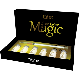 Gracias a la línea Efecto Botox Magic de Tahe y sus 4 principios activos de concentrado de keratina, colágeno, ácido hialurónico y aceite de argán mantendrás tu cabello a raya. Consigue hidratarlo y evitar que se parta: da la bienvenida a un pelo fuerte, flexible y sedoso.